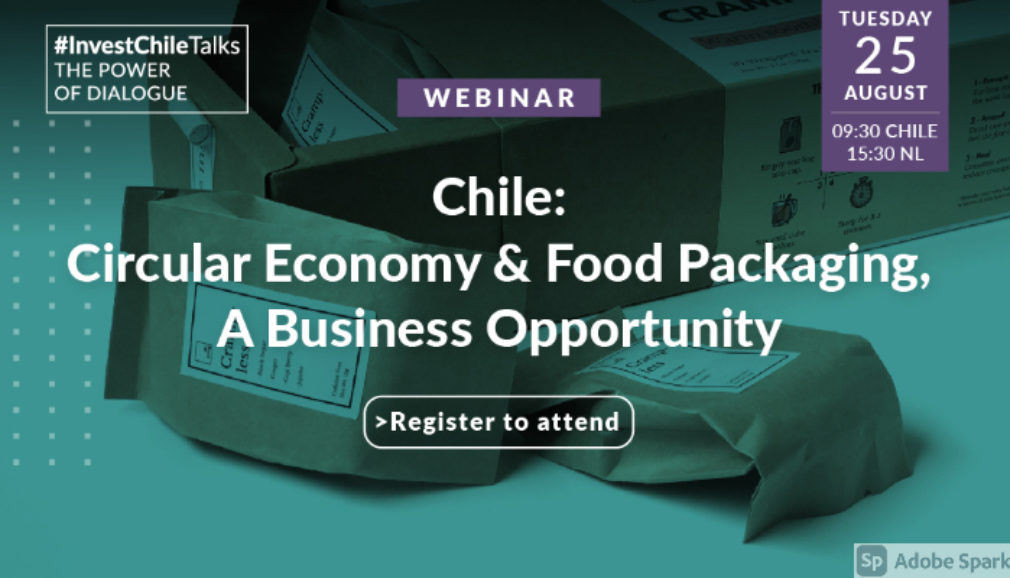 The investment climate and opportunities in the Chilean food industry, services and special programs within the circular economy and the impact of the roadmap of the Plastics Pact and the Extended Product Responsibility (REP) Law were some of the topics covered in the latest InvestChile webinar: “The Circular Economy and Food Packaging, a Business Opportunity”.