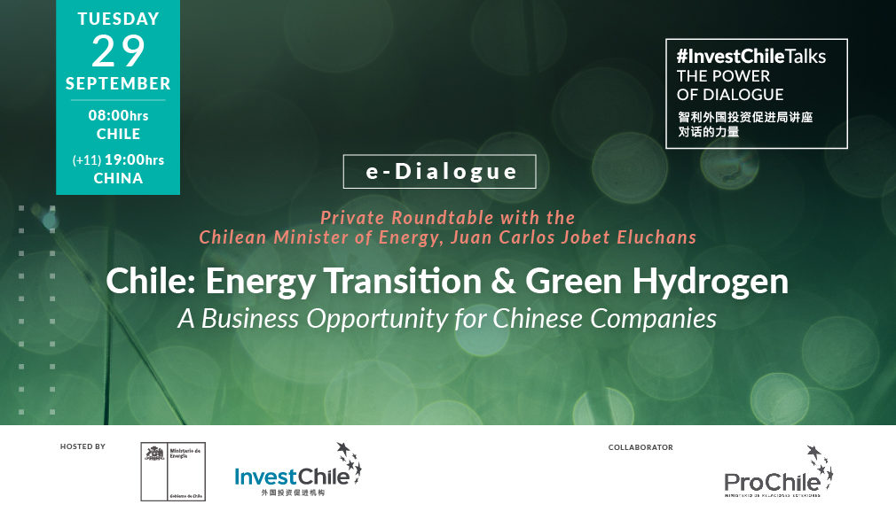 At this regard, China is not only our main commercial partner and a relevant investor in our country but a global player in the energy industry. Therefore, in this conversation with the Chinese companies, Minister Jobet will share the main guidelines of the Chilean roadmap to foster the future production of green hydrogen, which will bring a fruitful scenario for investment opportunities in this sector.
