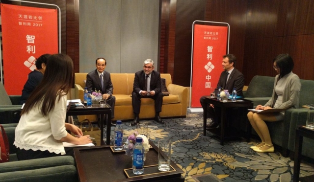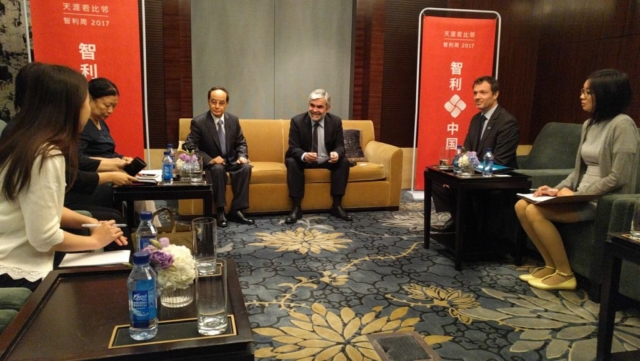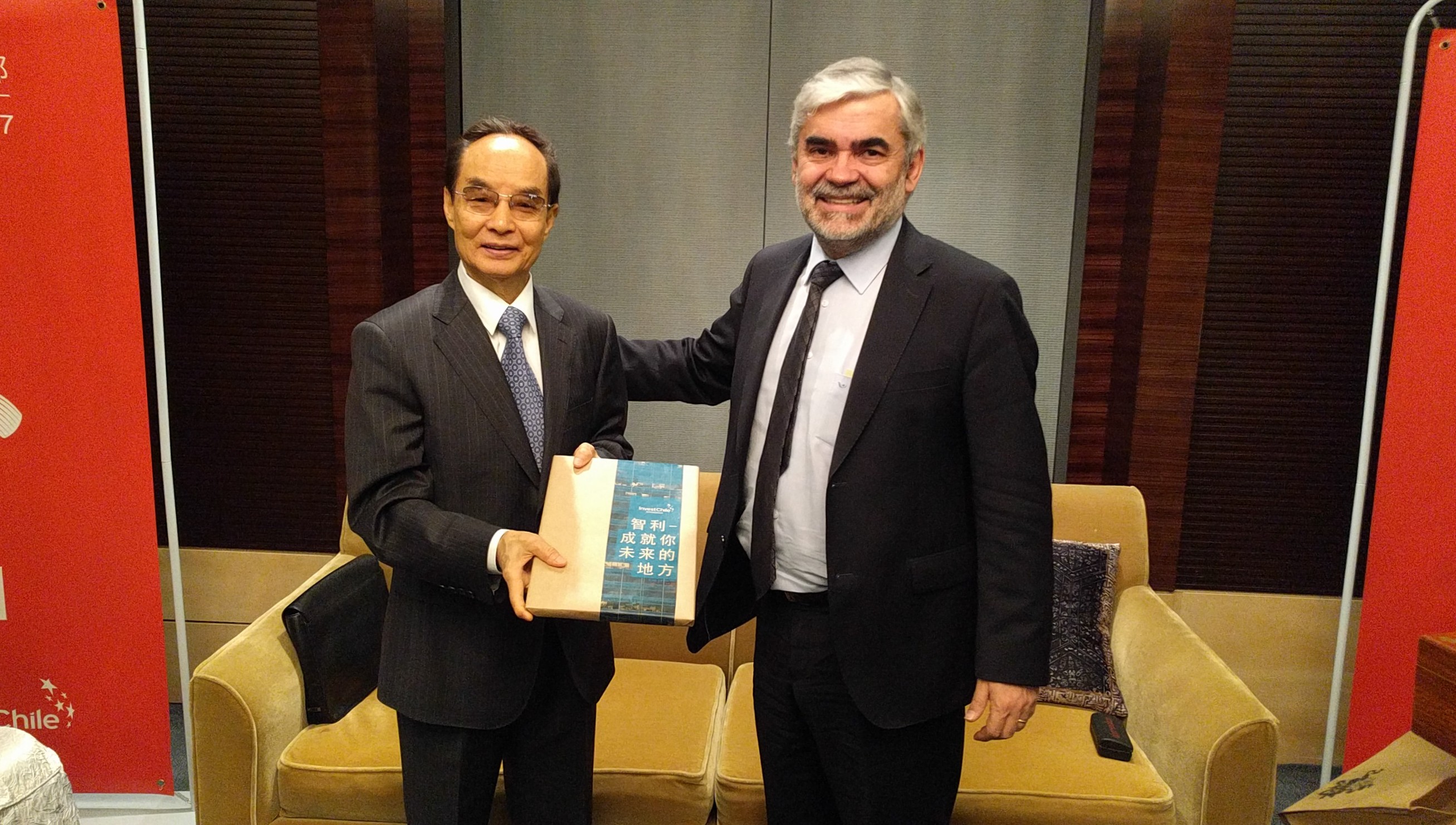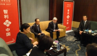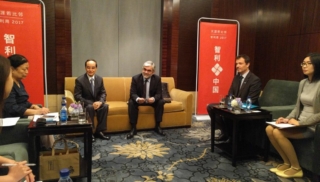 El presidente del China Council for International Investment Promotion (CCIIP), Mr. Miao Gengshu se reunió con el director de InvestChile, Carlos Álvarez, en el marco de la ChileWeek 2017 que se leva a cabo esta semana en seis ciudades del gigante asiático.