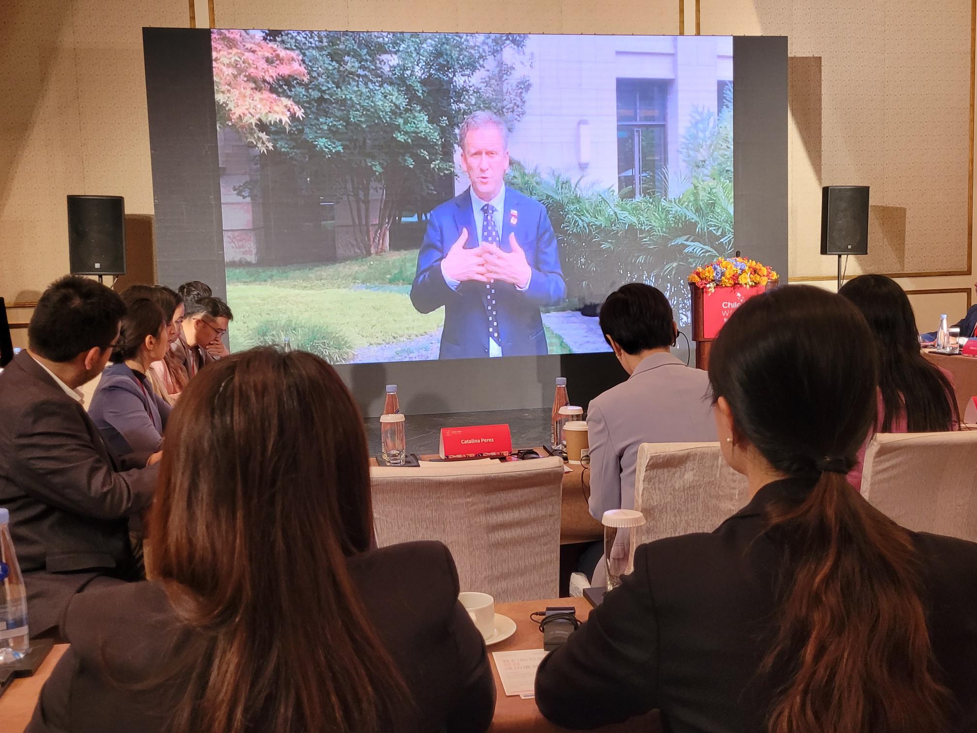 La instancia contó con video-saludos del ministro de Transportes, Juan Carlos Muñoz, y de la directora de InvestChile, Karla Flores. De manera presencial, se dirigieron a los presentes el embajador de Chile en China, Mauricio Hurtado y el director general de ProChile, Ignacio Fernández, quienes destacaron la importancia del evento para la relación económica entre ambas naciones.