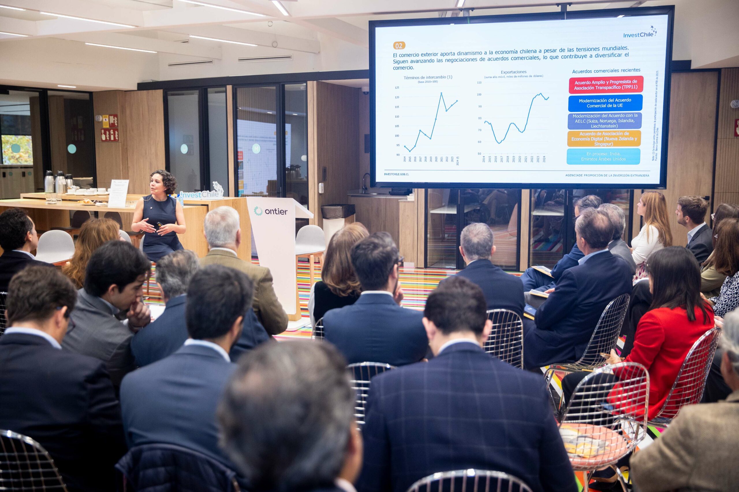 La directora de InvestChile, Karla Flores, encabezó una nueva gira de promoción de inversiones por Europa, que incluyó cuatro estaciones: Roma, Génova, París y Madrid, con el fin de reunirse con representantes del mundo público y privado para hablar sobre el escenario económico y las oportunidades de inversión existentes en Chile.