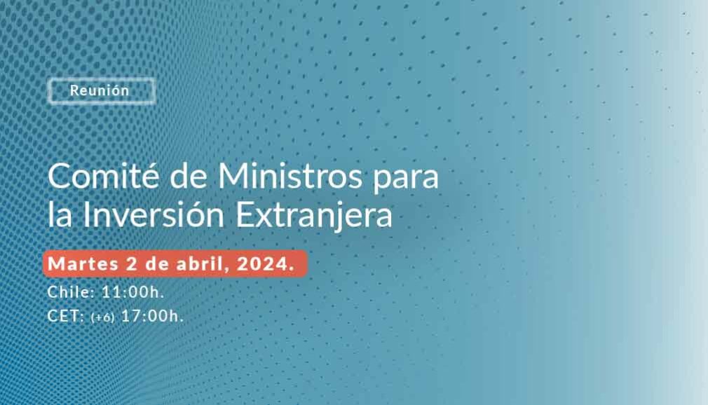 El Comité de Ministros para la Inversión Extranjera -compuesto por el Ministro de Economía- Nicolás Grau, Ministro de Hacienda- Mario Marcel, Ministro de Energía- Diego Pardow, Ministra de Minería-Aurora Williams, Ministro de Relaciones Exteriores- Alberto van Klaveren Stork, Ministra de Obras Públicas- Jessica López, Ministro de Agricultura- Esteban Valenzuela y la Directora de InvestChile, Karla Flores- se reunirá por primera vez en el año en una reunión donde se expondrá el estado de la IED en Chile y los datos actualizados sobre la cartera de InvestChile.