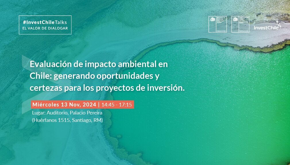 La Agencia de Promoción de la Inversión Extranjera – InvestChile y el Servicio de Evaluación Ambiental – SEA, te invitan al conversatorio «Evaluación de impacto ambiental en Chile: generando oportunidades y certezas para los proyectos de inversión», el miércoles 13 de noviembre a las 14:45 hrs.
