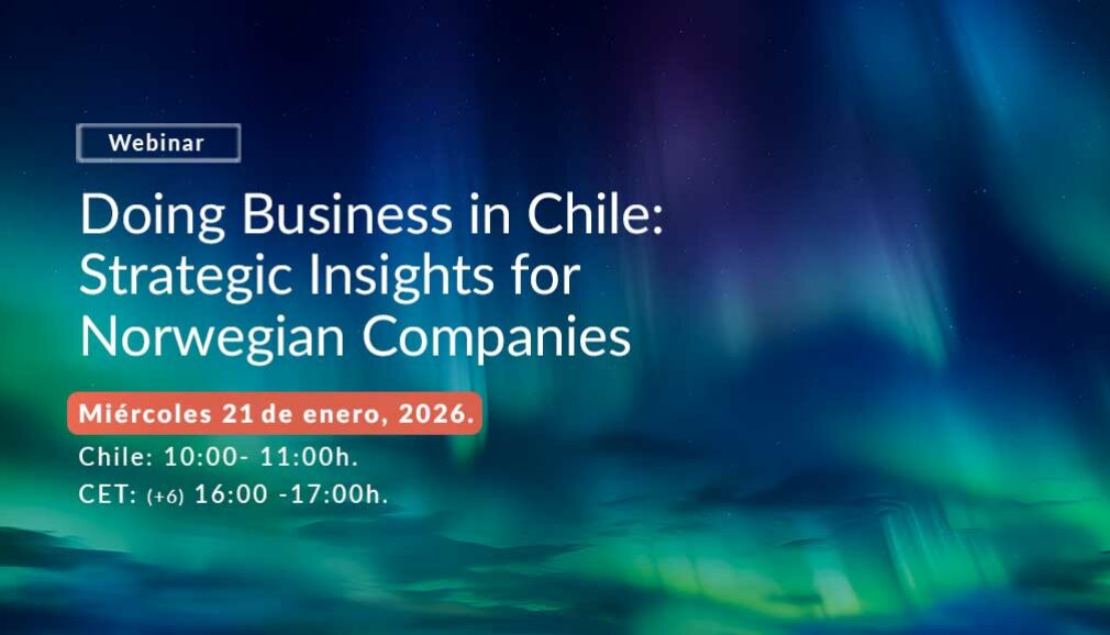 InvestChile patrocina el webinar “Doing Business in Chile: Strategic Insights for Norwegian Companies”, instancia en la que se presentará un informe elaborado por Menon Economics sobre las oportunidades, desafíos y condiciones del mercado chileno para las empresas noruegas, junto con una visión general de la relación comercial entre Chile y Noruega.
