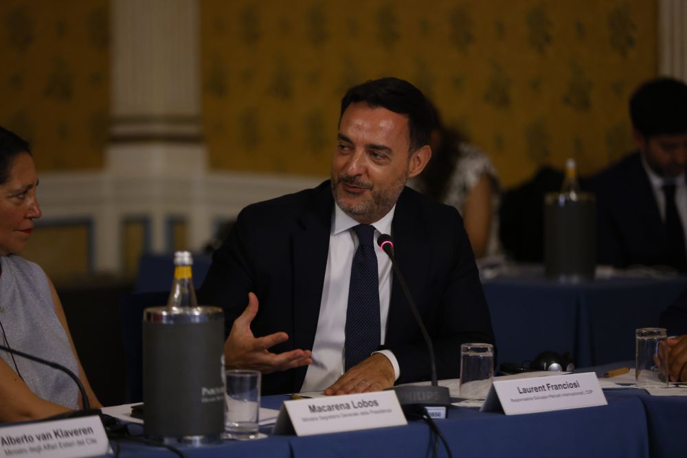 En horas de la tarde, más de 45 altos ejecutivos de compañías italianas participaron en la mesa redonda “Perspectivas y Oportunidades para empresas italianas en Chile”, organizada por InvestChile. La instancia, moderada por la agregada de inversiones en Roma, Francisca Müller, fue encabezada por el ministro de Relaciones Exteriores, Alberto van Klaveren; la ministra Secretaria General de la Presidencia, Macarena Lobos; el jefe de Desarrollo de Mercados Internacionales de CDP, Cassa Depositi e Prestiti, Laurent Franciosi; y la directora de InvestChile, Karla Flores.