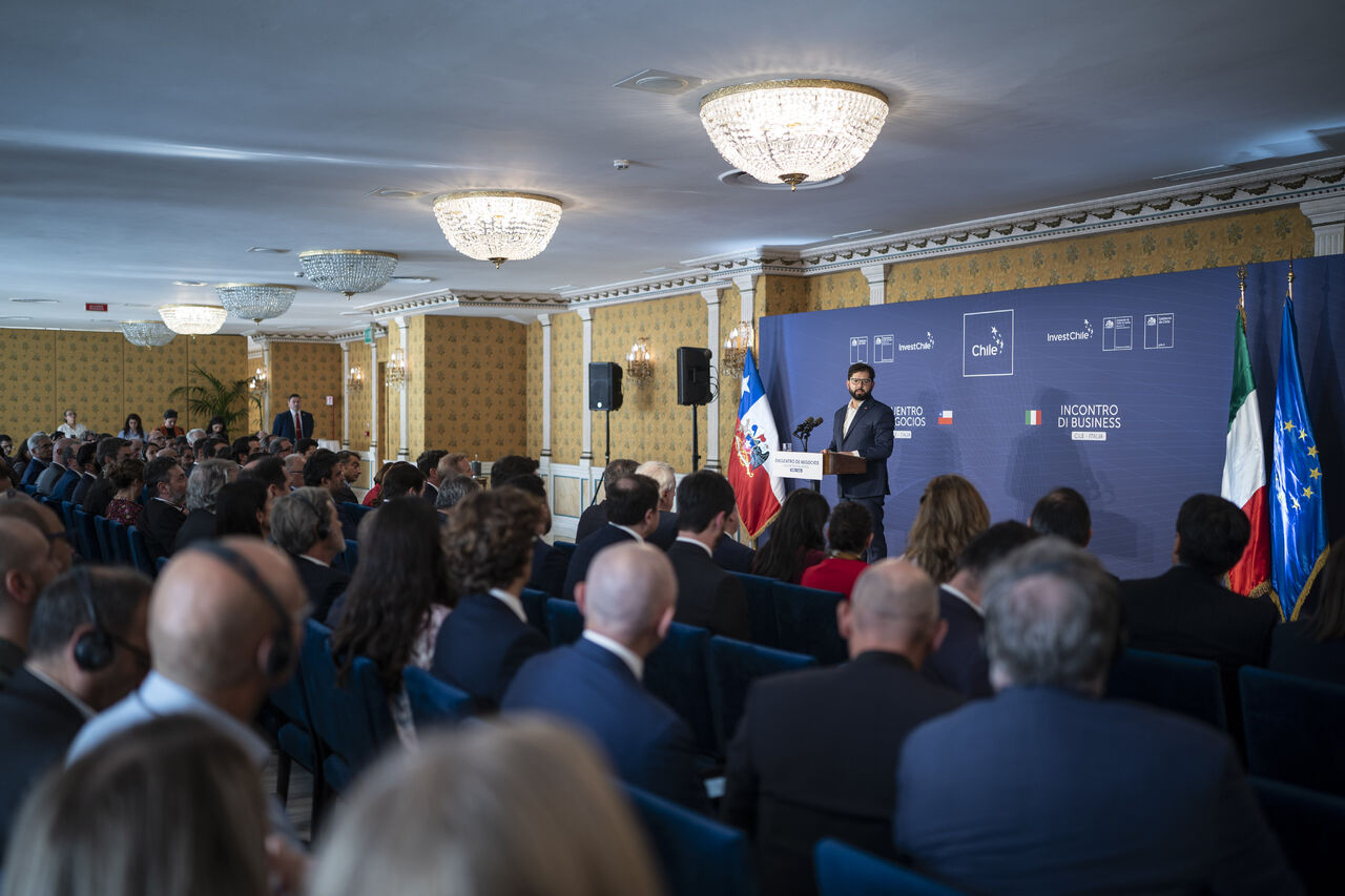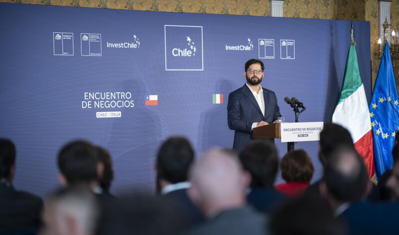 Con la participación de autoridades y más de 150 inversionistas italianos, el Presidente de la República, Gabriel Boric Font, encabezó el Encuentro de Negocios Chile – Italia, instancia organizada por InvestChile y realizada en Roma este miércoles, en el marco de la visita de trabajo que el Mandatario realiza al país europeo. El foco de la actividad fue profundizar las relaciones comerciales entre Chile e Italia, abordar las principales oportunidades y desafíos en torno a la inversión entre ambos países, y destacar a nuestro país como hub de América Latina.
