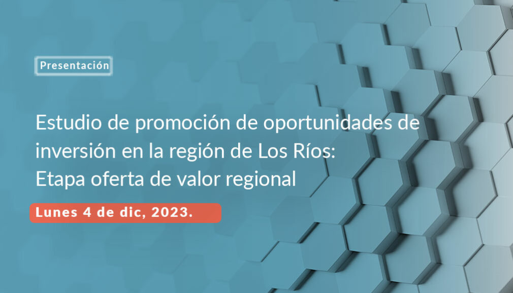 El Gobierno Regional de los Ríos y la Corporación Regional de Desarrollo Productivo (CRDP), organizan una actividad en donde presentarán el estudio “Promoción de oportunidades de inversión: Etapa oferta de valor regional”, sus resultados y conclusiones. El evento se realizará el día 04 de Diciembre a las 15:30 hrs. en la ciudad de Valdivia.
