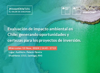 Conversatorio «Evaluación de impacto ambiental en Chile: generando oportunidades y certezas para los proyectos de inversión» La Agencia de Promoción de la Inversión Extranjera – InvestChile y el Servicio de Evaluación Ambiental – SEA, te invitan al conversatorio «Evaluación de impacto ambiental en Chile: generando oportunidades y certezas para los proyectos de inversión», el miércoles 13 […]