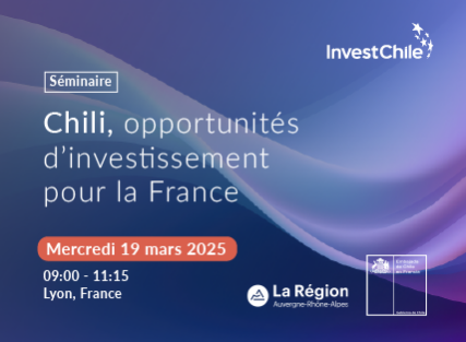 La Embajada de Chile en Francia, en conjunto a la Región Auvergne-Rhône-Alpes e InvestChile han coordinado un Seminario titulado «Chili, Chili, opportunités d’investissement pour la France» / Chile, oportunidades de inversión Francia. El seminario contará con la presencia de S.E Embajador de Chile en Francia Sr Raúl Fernández Daza, además de autoridades locales de la […]
