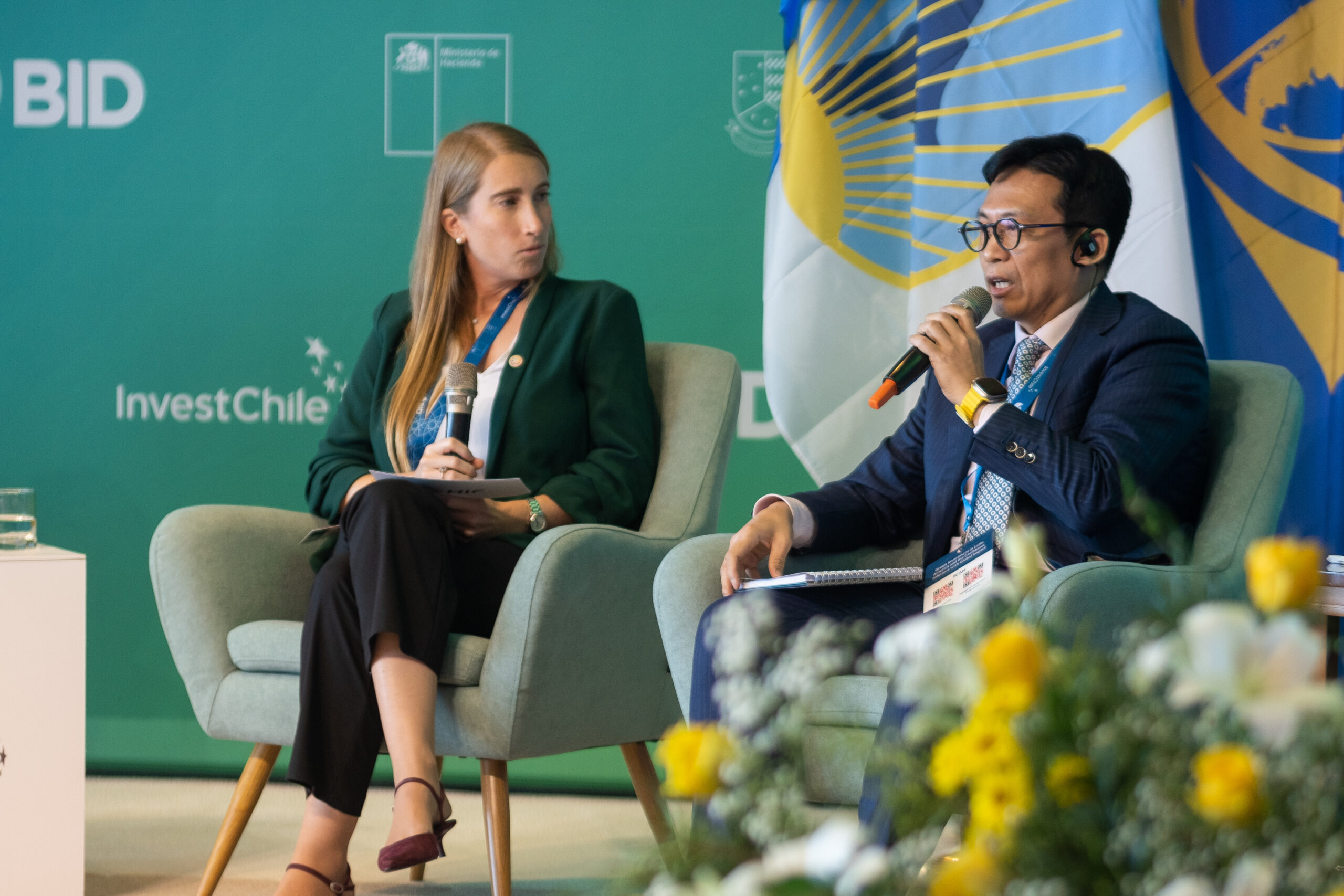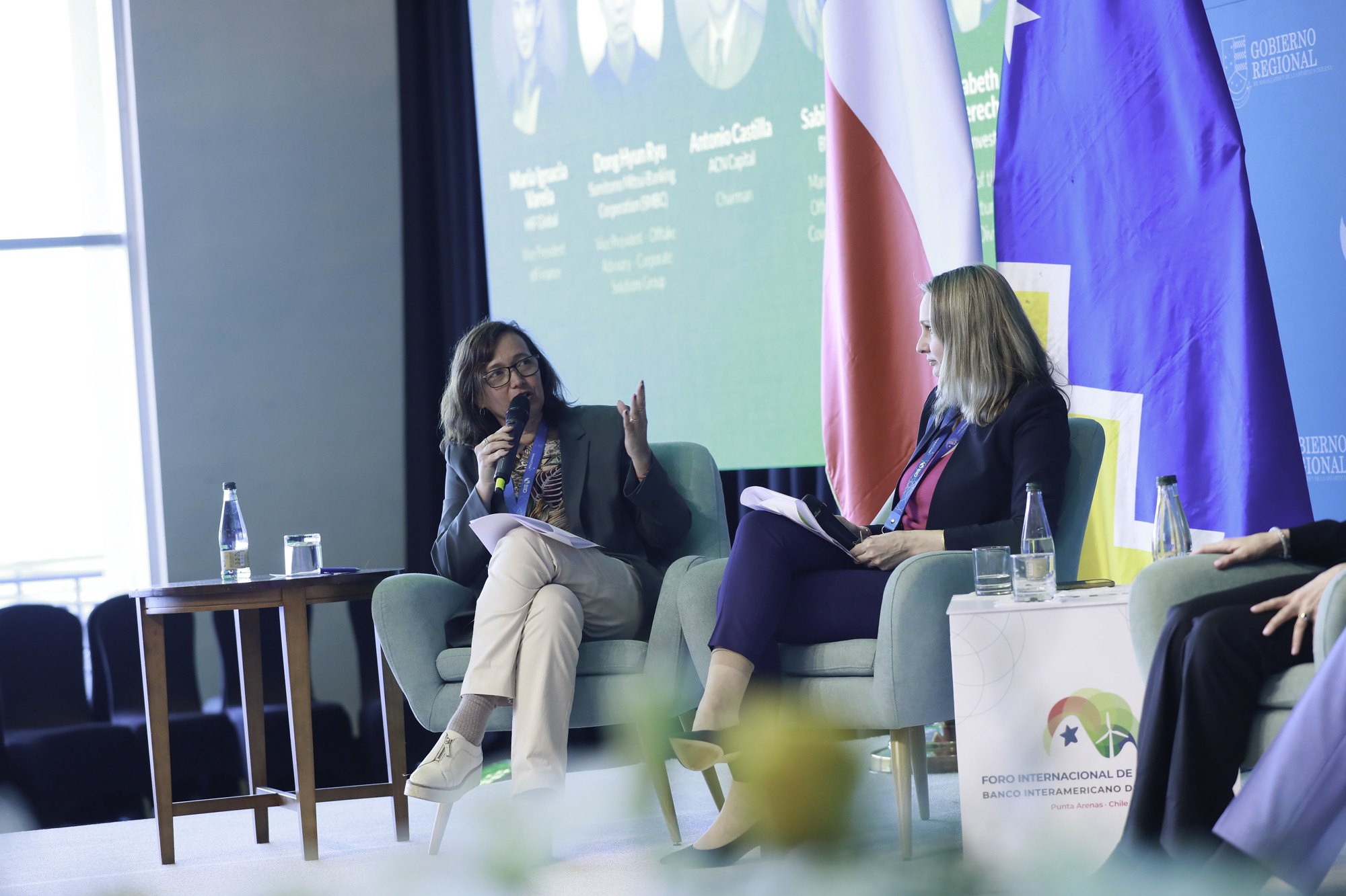 El segundo panel del foro, titulado «Financiamiento de proyectos para un futuro cero emisiones», fue moderado por Solange Berstein, presidenta de la Comisión para el Mercado Financiero, y contó con la participación de María Ignacia Varela, vicepresidenta de Finanzas de HIF Global; Dong Hyun Ryu, vicepresidente de Asesorías en Acuerdos Comerciales del Grupo de Soluciones Corporativas de Sumitomo Mitsui Banking Corporation (SMBC); Sabina Veksler, directora general para Instituciones Oficiales en las Américas de BNP Paribas; Antonio Castilla, presidente de ACN Capital; y Elizabeth Robberechts, jefa de la División de Infraestructura y Energía de BID Invest.