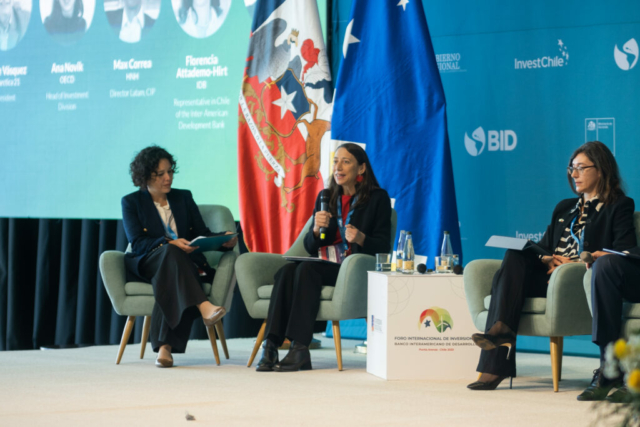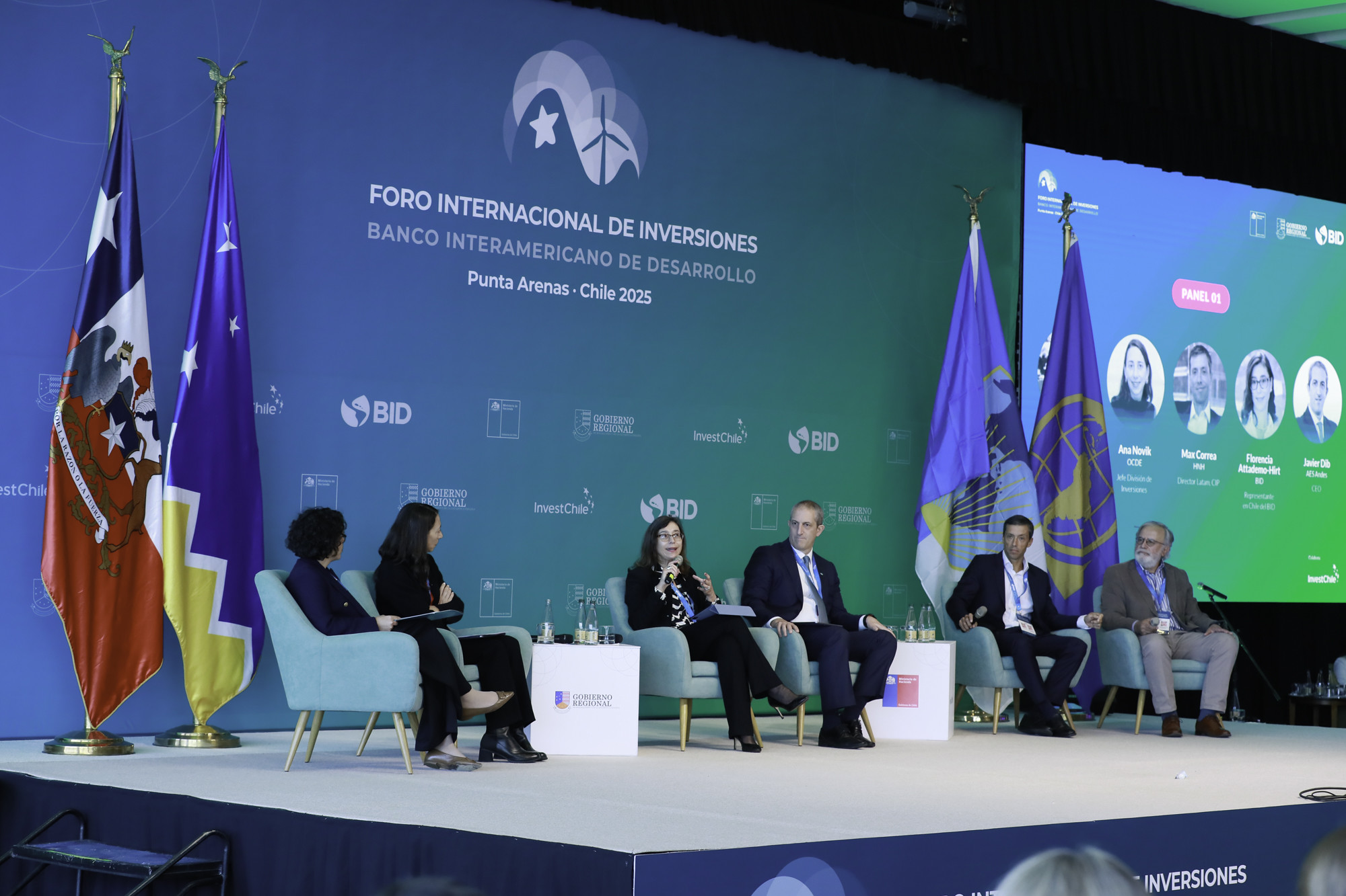 En la instancia, participaron Ana Novik, jefa de la División de Inversiones de la OCDE; Florencia Attademo-Hirt, representante en Chile del BID; Javier Dib, gerente general de AES Andes; Max Correa, director para Latam de Copenhagen Infrastructure Partners (CIP); y Jaime Vásquez, presidente de Antarctica 21.