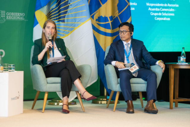 La directora de InvestChile, Karla Flores, moderó el panel “Inversiones con propósito: resolviendo desafíos globales”.