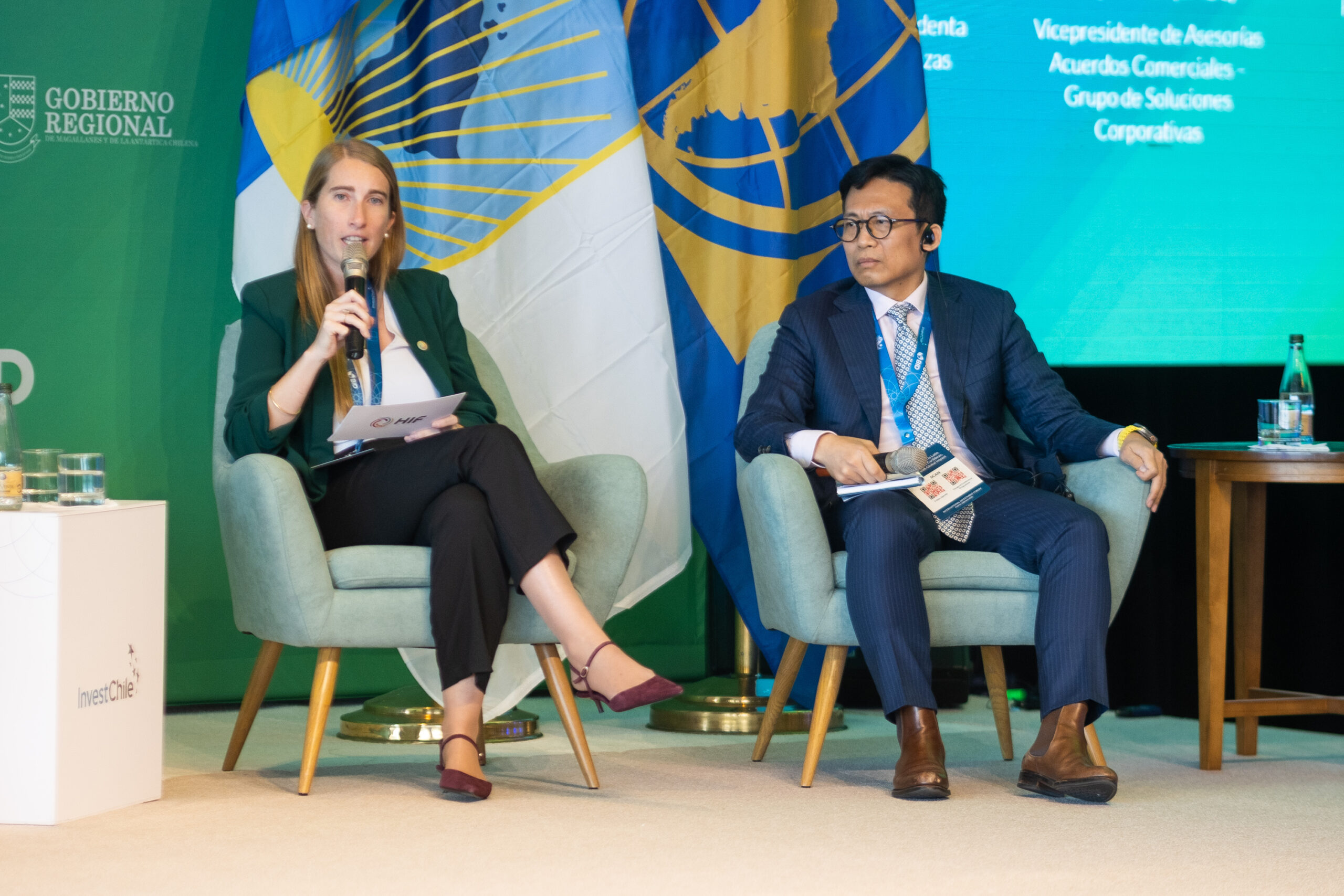 Durante la tarde, la directora de InvestChile participó en el workshop “Descarbonización y desarrollo local”, moderado por Marcos Kulka, Executive Director de H2 Chile.
