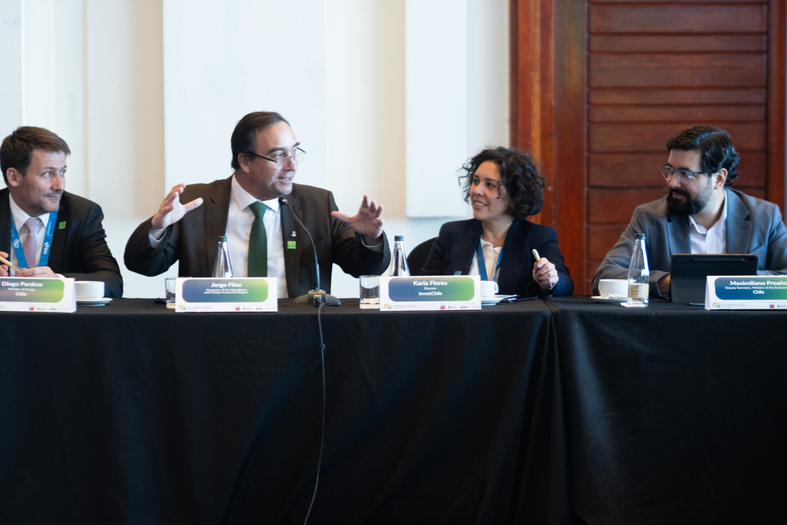 La instancia, moderado por Fabrizio Opertti, gerente a.i. del Sector de Productividad, Comercio e Innovación (PTI) del BID, contó con la participación de Jessica López, ministra de Obras Públicas; José Miguel Benavente, vicepresidente ejecutivo de la CORFO; Máximo Pacheco, presidente del directorio de Codelco; Ramón Fiestas, presidente de Global Wind Energy Council (GWEC) para América Latina; y Marcelo Cabrol, Jefe de Estrategia de BID Lab.