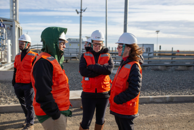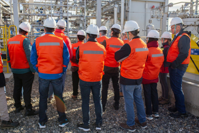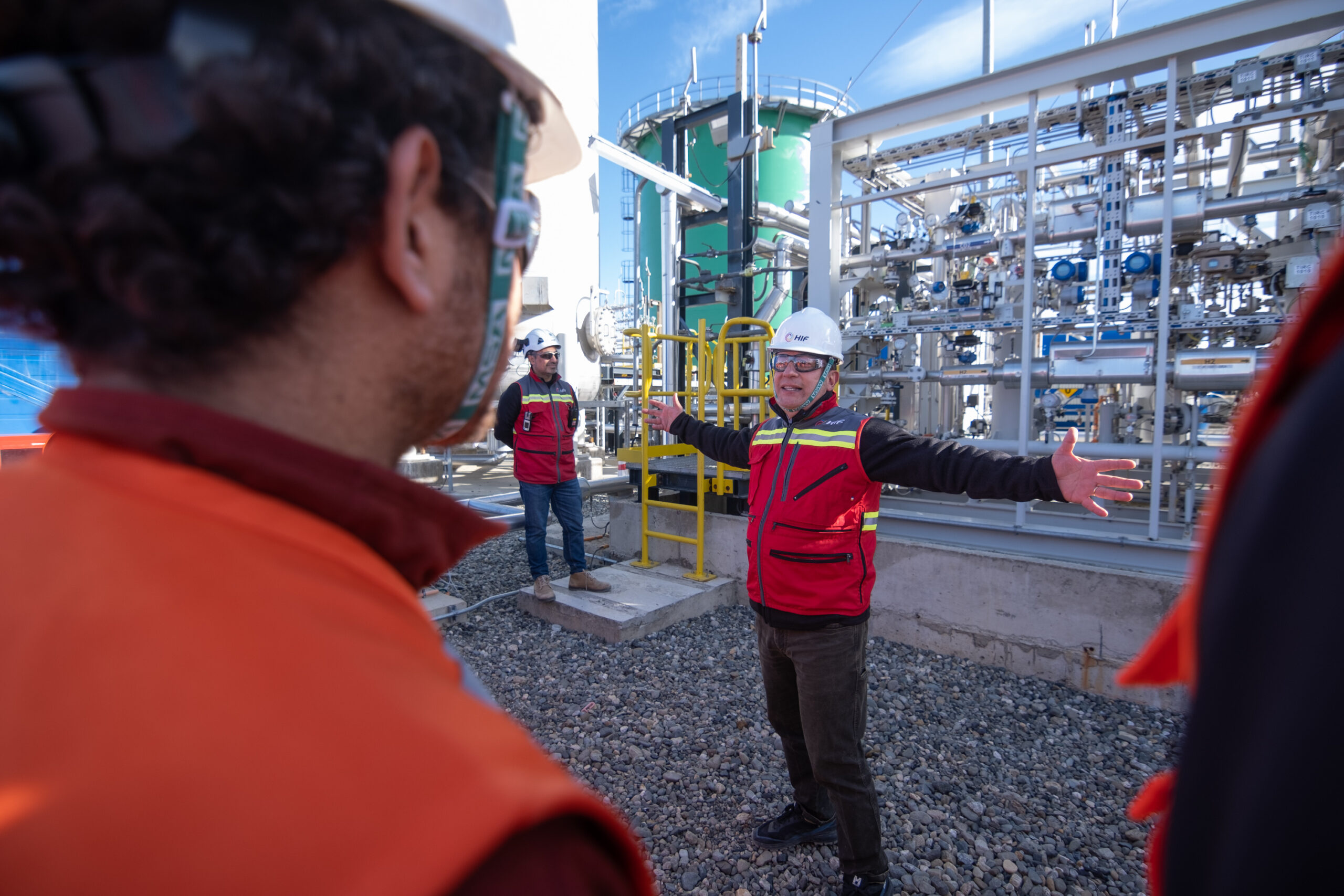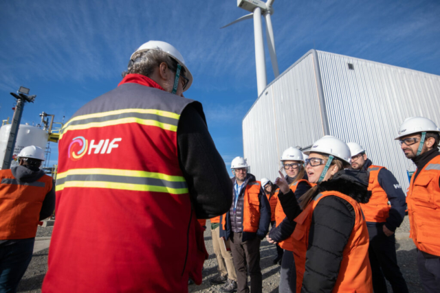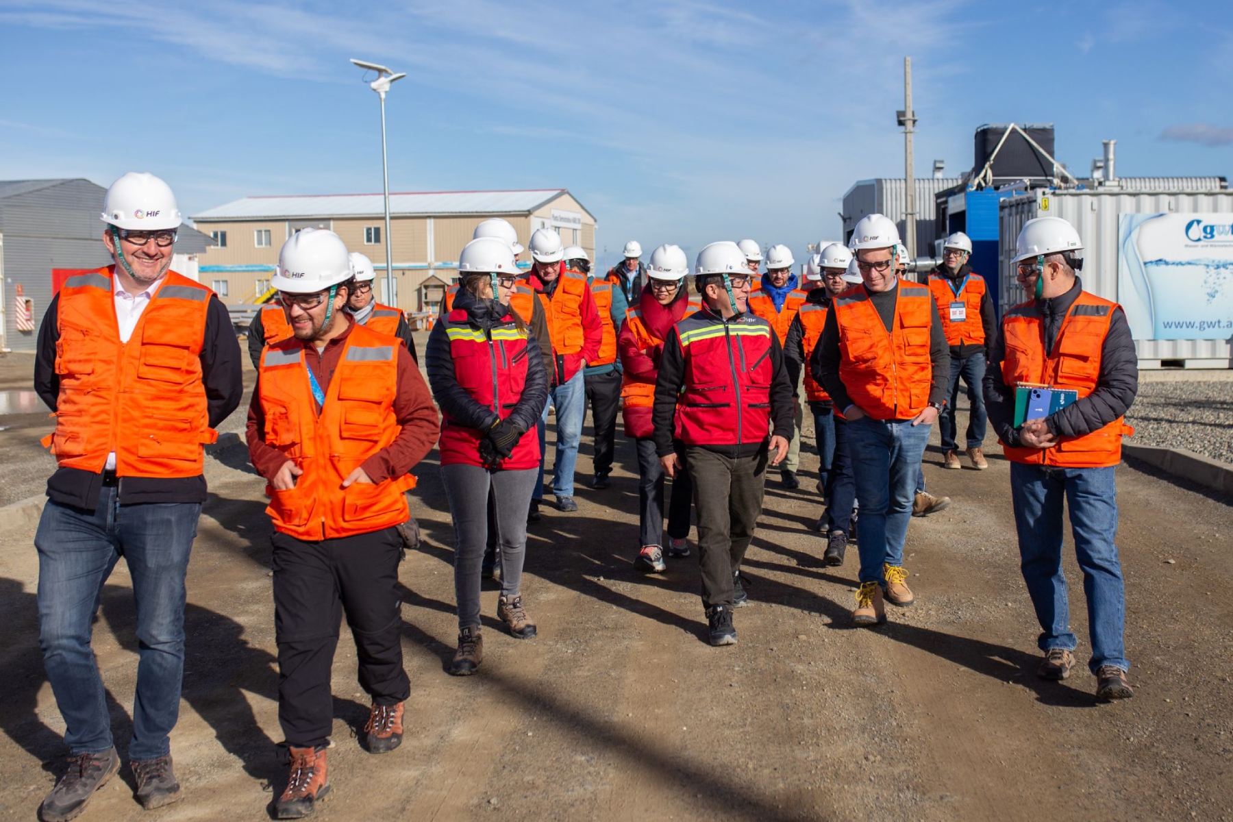 El día martes, más de 60 representantes de empresas y autoridades asistentes al Foro realizaron una visita técnica a Haru Oni, de HIF Chile, la primera planta operativa de e-combustibles en el mundo, donde fueron recibidos por Juan Eduardo Gallardo, gerente de HIF Magallanes; Rodrigo Delmastro, gerente de HIF Energy; María Ignacia Varela, vicepresidenta de finanzas HIF Global y Marcelo Daller, gerente de planta.