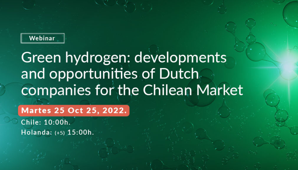 Holland House Chile junto a InvestChile, ProChile y la embajada de los Países Bajos en Chile organizan el webinar ‘Green hydrogen: developments and opportunities of Dutch companies for the Chilean Market’ en el marco de la misión comercial Neerlandesa respecto del hidrogeno verde. El evento reunirá 15 empresas destacadas en distintos aspectos de la cadena de valor del hidrógeno verde y tiene como objetivo informar anticipadamente los desarrollos del mercado Neerlandés y las oportunidades que conlleva para el mercado Chileno.