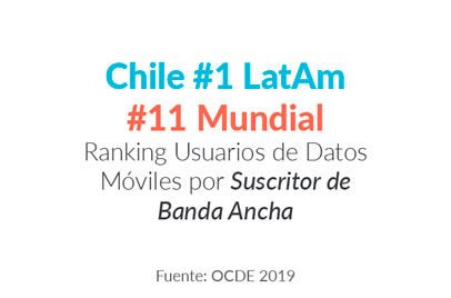 Digitalización e inclusión financiera. El país también se destaca como ejemplo de digitalización e inclusión financiera: +95% de la población adulta tiene acceso a algún producto financiero (CMF). La OCDE destacó a Chile como el top 9 de países a nivel mundial, con mayor consumo de datos móviles por usuario en 2023 (21,4 GB), después de Suecia (21,5 GB) y antes de Irlanda (20,5 GB) (Penetración y uso de datos 2023- OCDE).