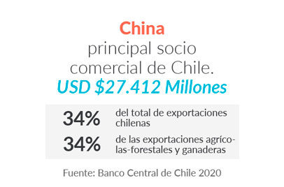 Redes. Tenemos una robusta red comercial gracias a nuestros 34 acuerdos con 65 mercados, que nos permiten alcanzar el 88% del PIB mundial con condiciones arancelarias privilegiadas. Nuestro país es uno de los 15 mayores exportadores agrícolas del mundo y ha posicionado más de 50 productos en todos los mercados donde está presente. Somos líderes mundiales en exportación de arándanos, cerezas, uvas, ciruelas y manzanas deshidratadas, salmón y mejillones. Asimismo, estamos en los primeros lugares en los rankings de exportación de vino, frambuesas e inulina.