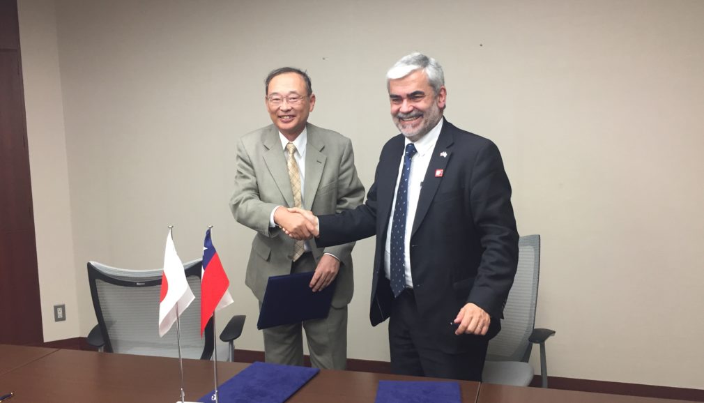 En el marco de la apertura de la primera Oficina de Promoción de Inversiones de Chile en Asia, y la conmemoración de los 120 años de relaciones diplomáticas entre Chile y Japón, el director de InvestChile, Carlos Álvarez Voullième, y el presidente del Instituto Japonés para la Inversión en el Extranjero (JOI), Junichi Kondo, firmaron un Memorandum de Entendimiento.