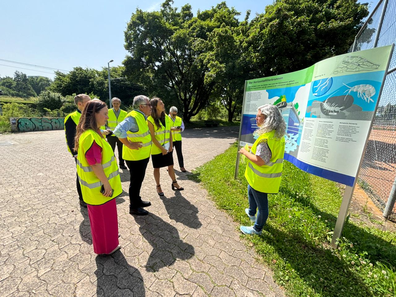 En horas de la tarde, las autoridades visitaron la plata de tratamiento de aguas de Grundwasserwerk Hardhof, donde pudieron conocer el funcionamiento de la Planta de Tratamiento de Agua Subterránea Hardhof, que produce y suministra diariamente entre 20.000 y 150.000 metros cúbicos de agua subterránea, que llega a los hogares de Zúrich solo por gravedad tras el bombeo inicial.