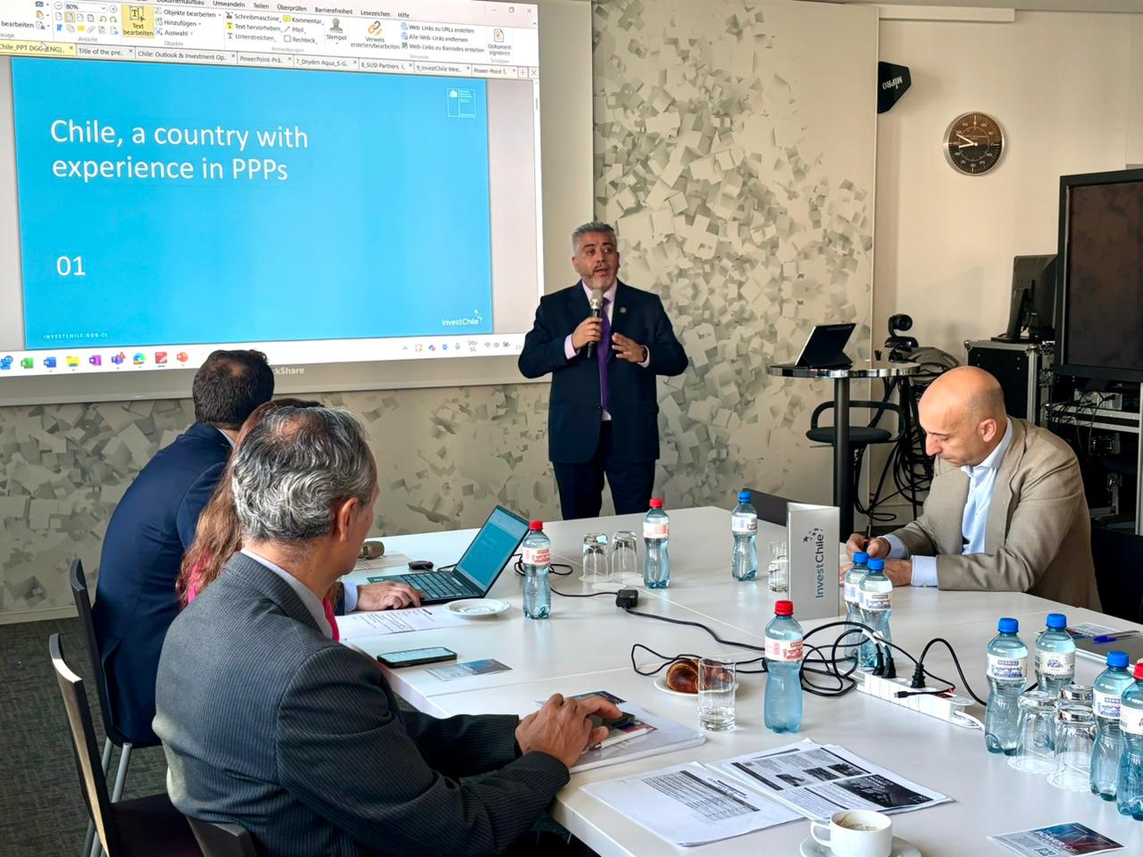 En Zúrich, el subsecretario de Obras Públicas, Danilo Núñez, junto a la directora de InvestChile, Karla Flores, y el director general (s) de Concesiones, Claudio Soto, encabezaron en horas de la mañana una reunión con compañías suizas del sector de infraestructura, organizada con el apoyo de la agrupacion Switzerland Global Enterprise. En la ocasión, presentaron los proyectos de la cartera de Concesiones a 2026 y luego sostuvieron una serie de reuniones bilaterales con compañías interesadas en las oportunidades relacionadas con el portafolio de iniciativas.