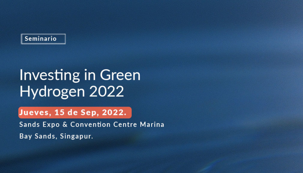 Investing in Green Hydrogen 2022 es una plataforma global líder que une toda la cadena de valor del hidrógeno. Más de 1500 inversores, desarrolladores de proyectos, bancos de desarrollo, financieros de más de 35 países diferentes se reunirán en Sands Expo & Convention Centre, Marina Bay Sands, Singapur, el 15 y 16 de septiembre de 2022.