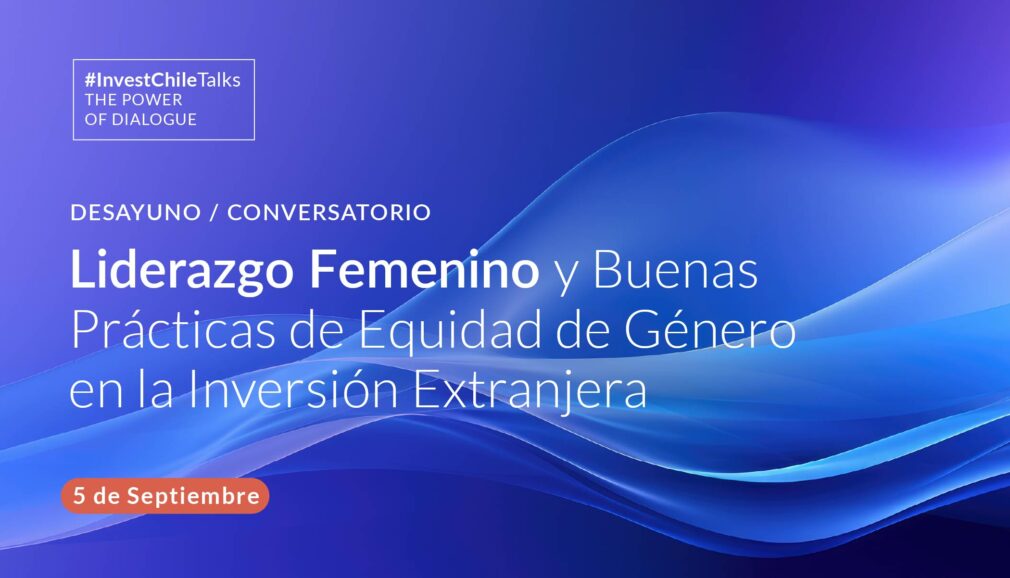 En el contexto de InvestChile Talks, se realizará el desayuno-conversatorio “Liderazgo Femenino y Buenas Prácticas de Equidad de Género en la Inversión Extranjera”, el próximo viernes 5 de septiembre, de 9:00 a 10:30 hrs.
