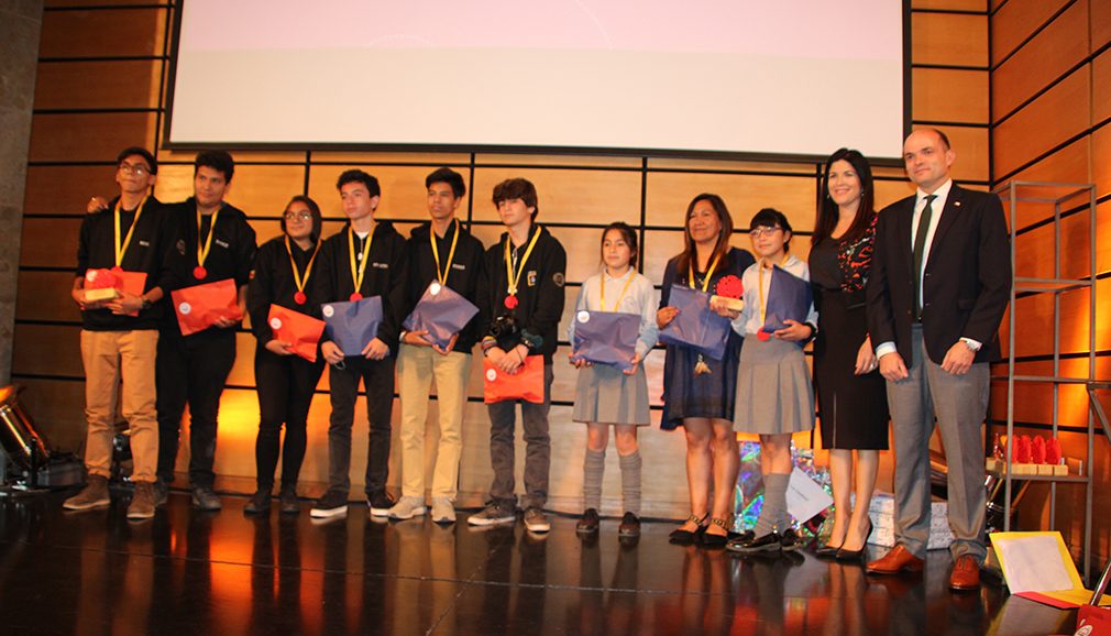 El director de InvestChile, Cristián Rodríguez Chiffelle, asistió a la premiación y entregó las medallas a las ganadoras de la Región de Los Lagos, con el proyecto ecológico “¿Qué hacemos con la basura de la Isla”, de la Escuela Rural La Capilla, de Isla Tenglo, en Puerto Montt.