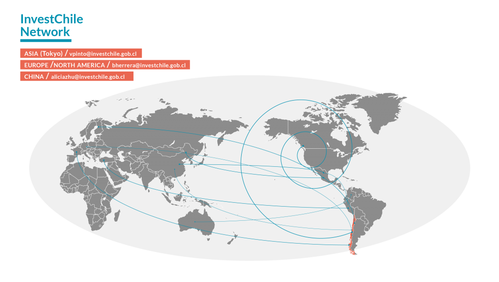 At InvestChile, the Chilean Agency for the Promotion of Foreign Investment, we are committed to promoting Chile in the global markets as an attractive destination to invest. Our mission is to give support to the needs of foreign investors and companies that would greatly benefit from the business opportunities that Chile offers.