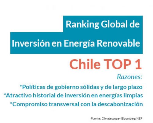 Somos un laboratorio natural para probar nuevas tecnologías y negocios sustentables. Chile se ha transformado en el entorno ideal para las energías limpias ubicándose a la vanguardia en la lucha contra el Cambio Climático en la región.