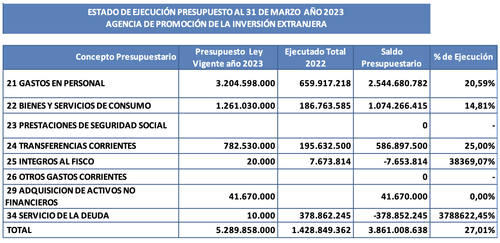 Estado de ejecucción presupuestaria al 31 de marzo-año2023