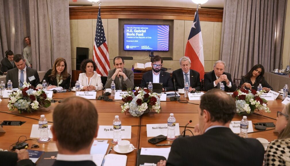 Durante la tarde, el ministro, junto a la directora de InvestChile, participaron de un encuentro con representantes de 14 empresas locales, como Amazon, Google, DHL, FedEx, Walmart en la US Chamber of Commerce.