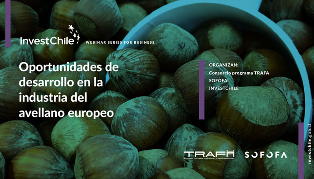 InvestChile y Consorcio TRAFA, tienen el agrado de invitarlo a participar del webinar «Oportunidades de desarrollo de la agroindustria en La Araucanía: producción de avellano europeo», que contará con la presencia de los dos más grandes productores de esta especie en el mundo.