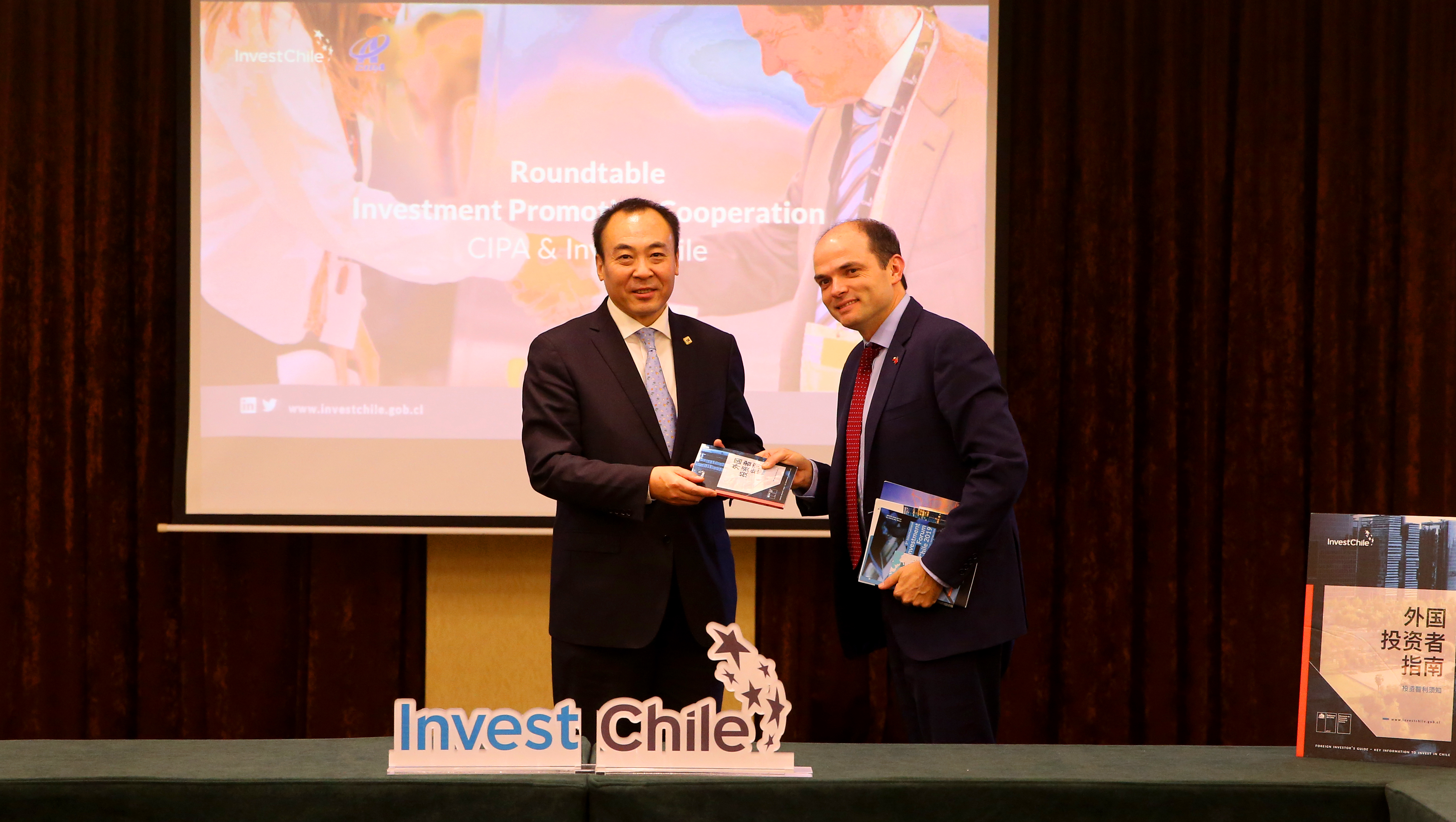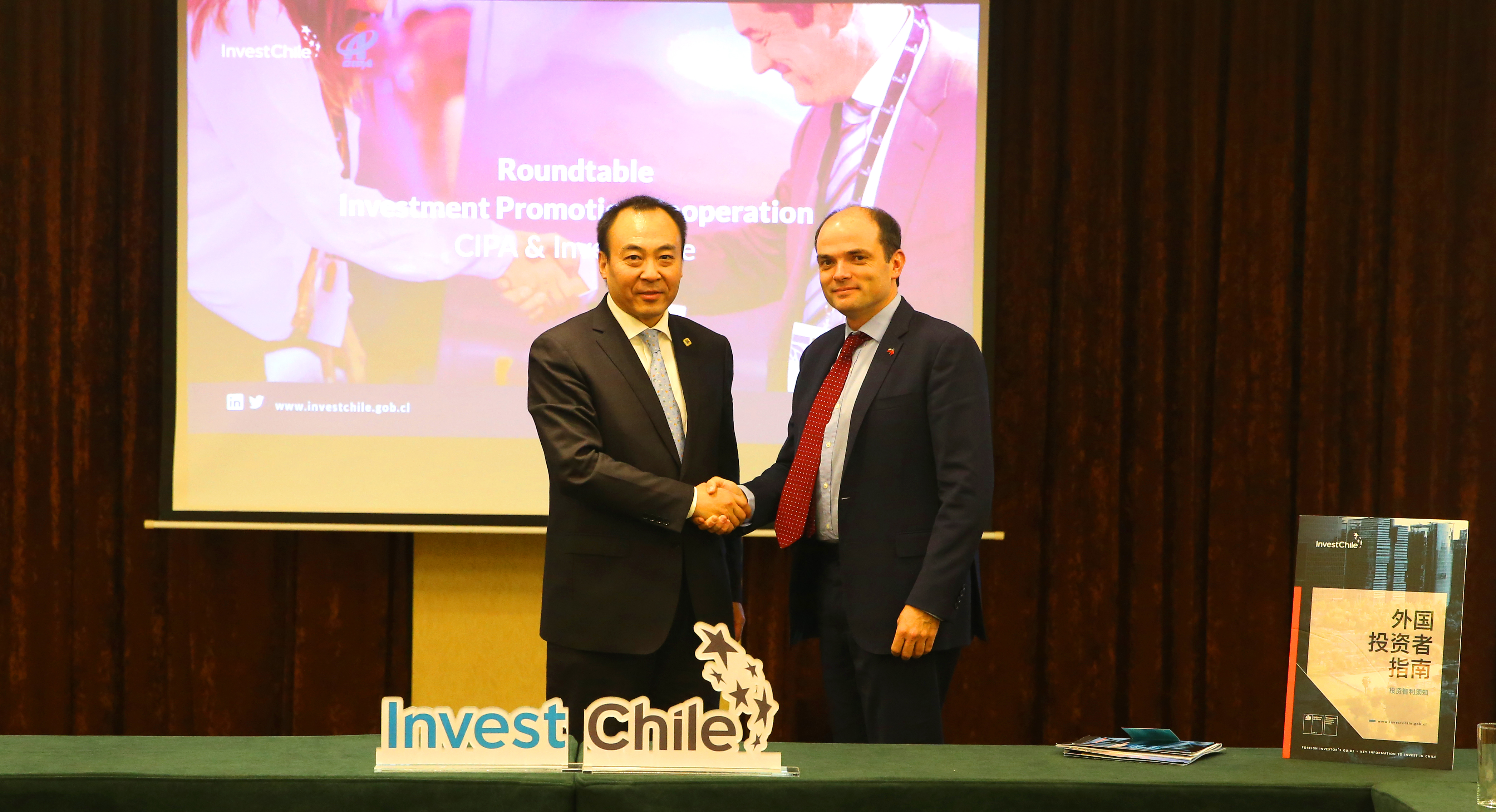 Cristián Rodríguez took the opportunity to give his CIPA counterpart a copy of the first Chinese edition of InvestChile’s Foreign Investor’s Guide, a key tool for doing business in Chile.