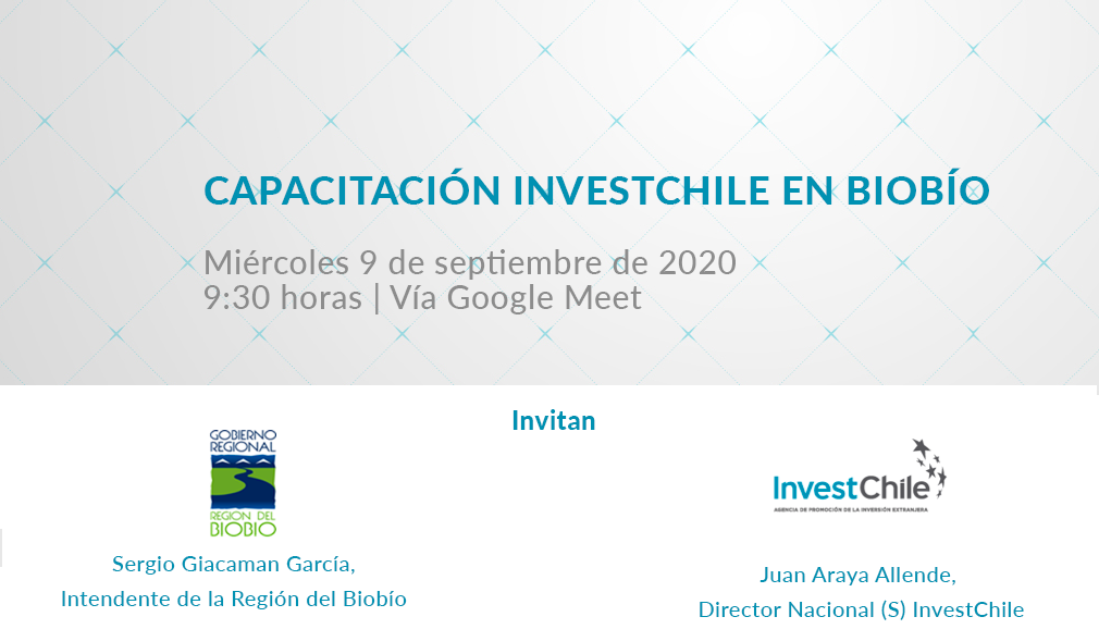 Sergio Giacaman García, Major of the Biobío Region and Juan Araya Allende, InvestChile’s National Director (S) , invite you to the kick-off training to promote and attract foreign direct investment in Biobio’s region.