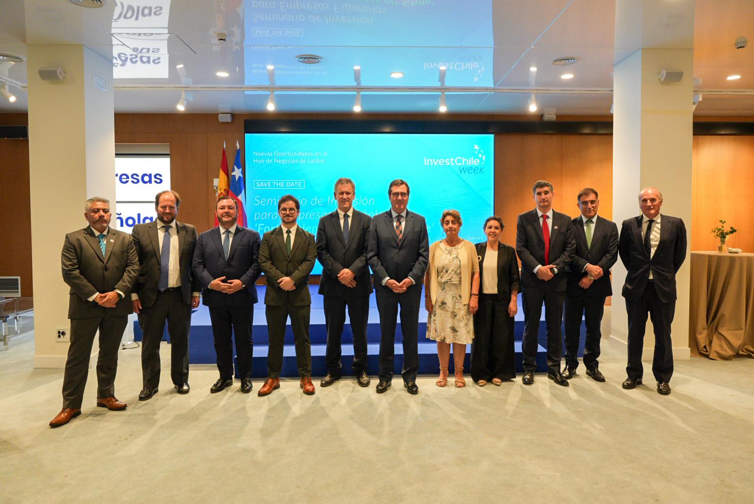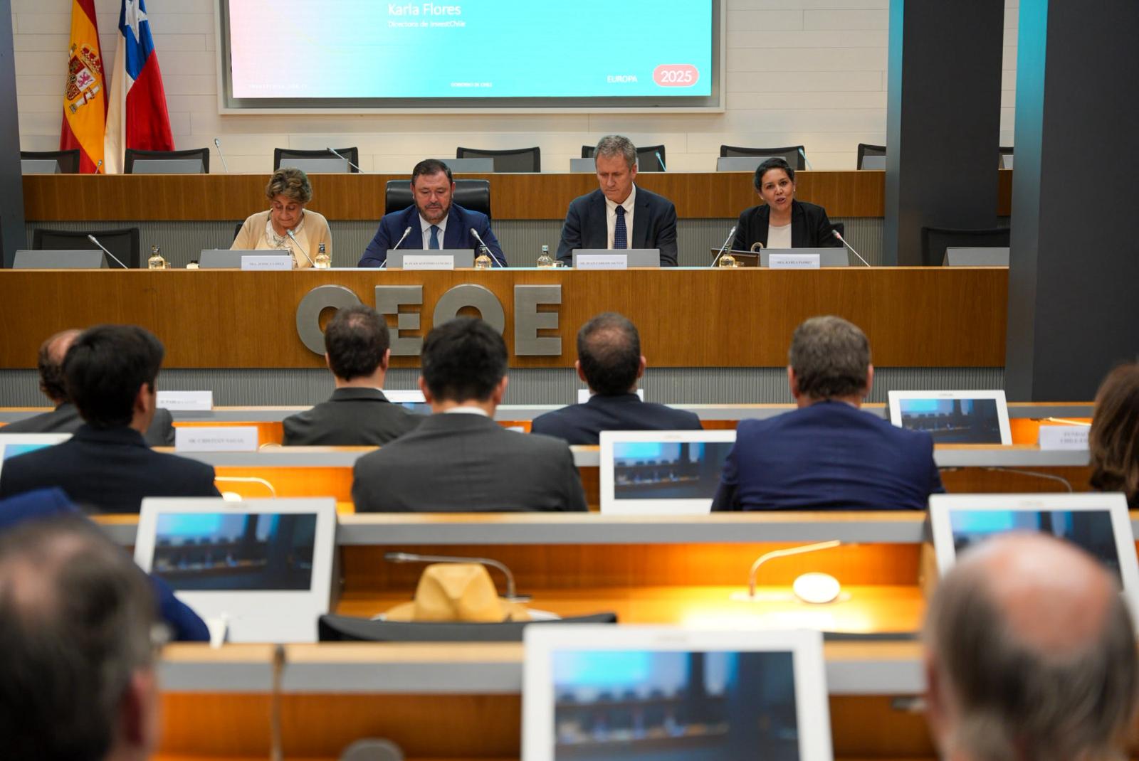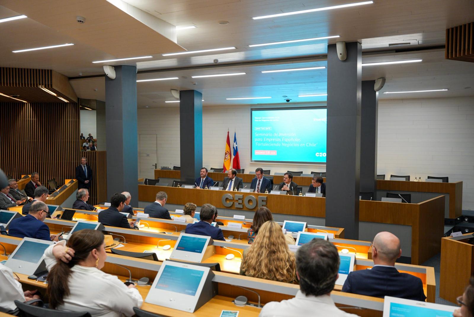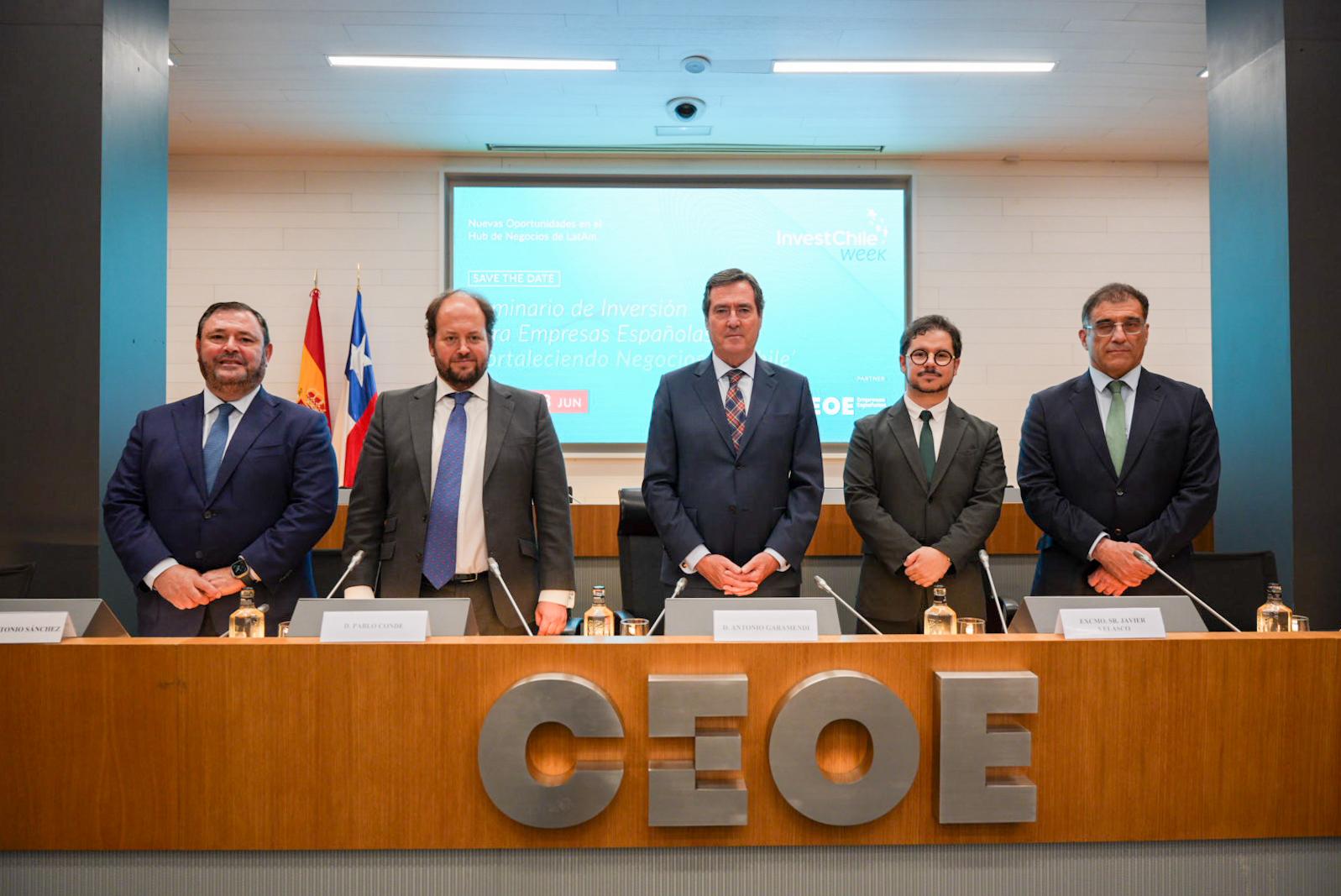 The day concluded with a seminar titled “Investment Opportunities in Latin America’s Hub,” held at the headquarters of the Spanish Confederation of Business Organizations (CEOE) and co-organized by InvestChile with support from the Chilean Embassy in Madrid and export promotion agency ProChile Spain. The event featured the participation of the Chilean Ambassador, Javier Velasco; President of the CEOE, Antonio Garamendi; and over a hundred local business leaders and investors.