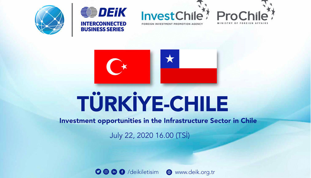 The webinar is organized by the Turkish Business Association (DEIK), the Turkish Construction Companies Association (TMB), the Chilean Ministry of Public Works and ProChile Turkey, in collaboration with InvestChile.