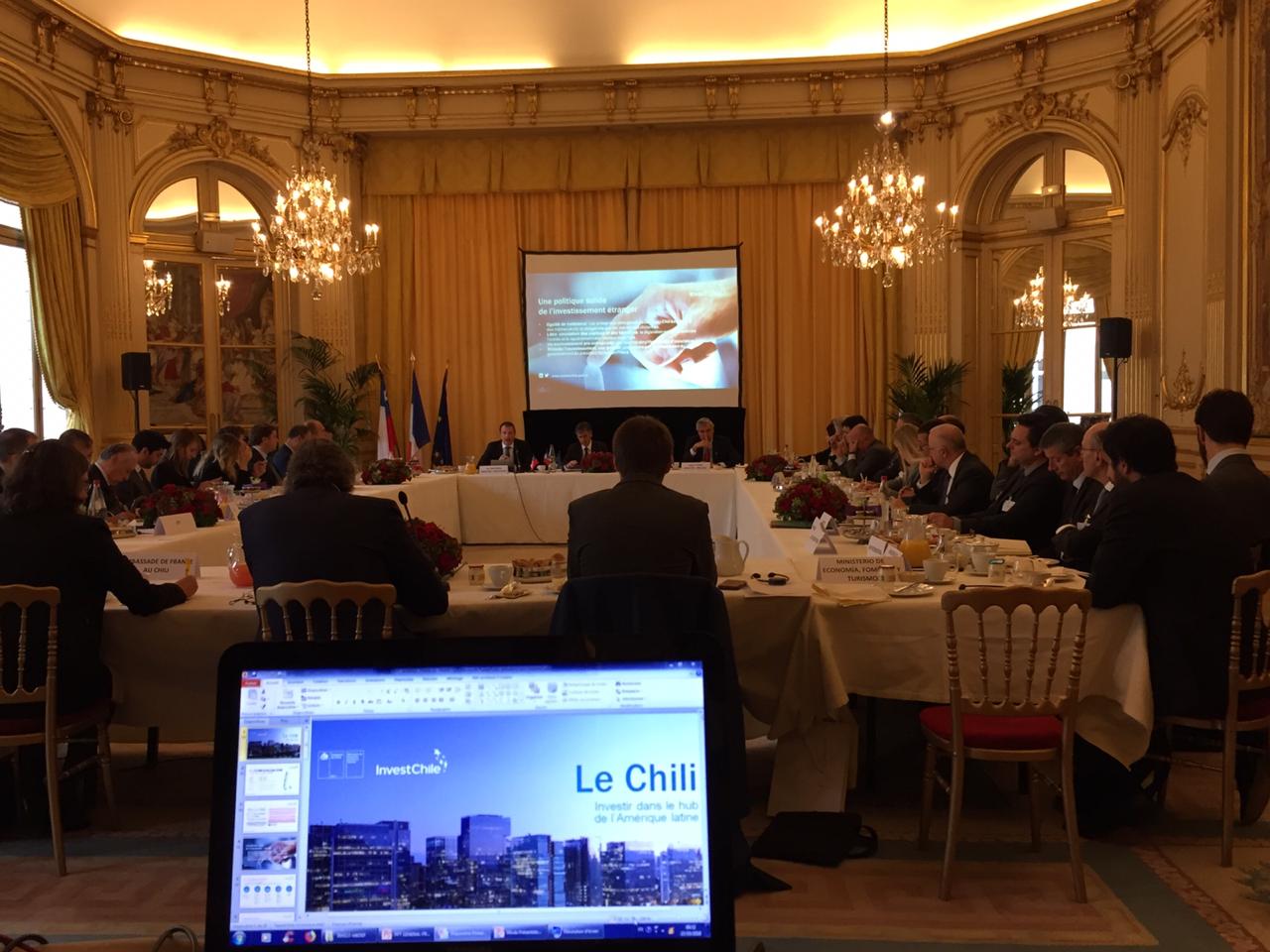 In Paris, he spoke at a plenary session of the OECD’s Investment Committee and headed an investment seminar, organized by InvestChile in conjunction with MEDEF, France’s most important business association, which was attended by more than 60 senior representatives of local companies. Similarly, in Spain, he led a meeting organized by the Chile-Spain Foundation and InvestChile in which he presented the pro-investment agenda of the government of President Sebastián Piñera to some 60 companies, including Abertis, Acciona Energy, Banco Santander, Celeo Elecnor, Enagas, Enertis Solar, Everis, Gaes, Catari Group, Itaú, Sacyr, Suez and Telefónica.
