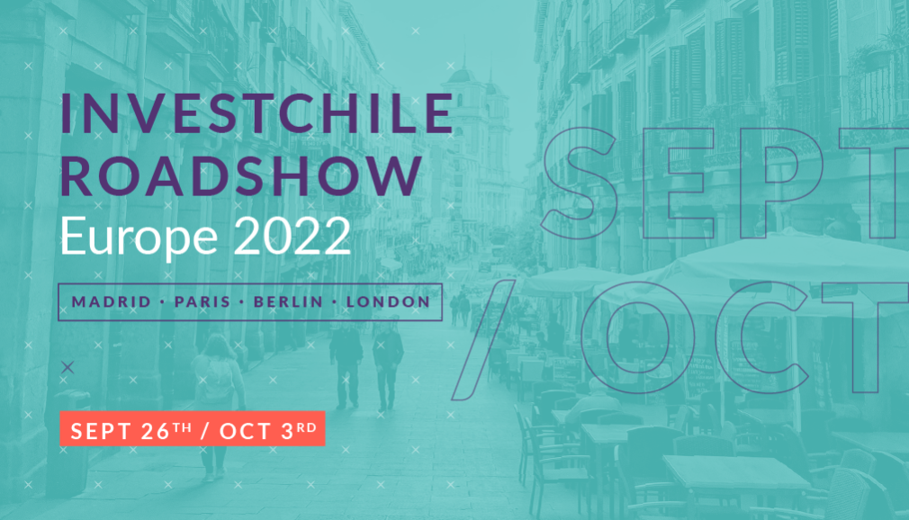 This Roadshow is part of InvestChile’s international agenda for promoting and attracting investment in priority markets. It comprises business activities in various European cities -such as Madrid, París, Berlin and London-, from September 26 through October 3.