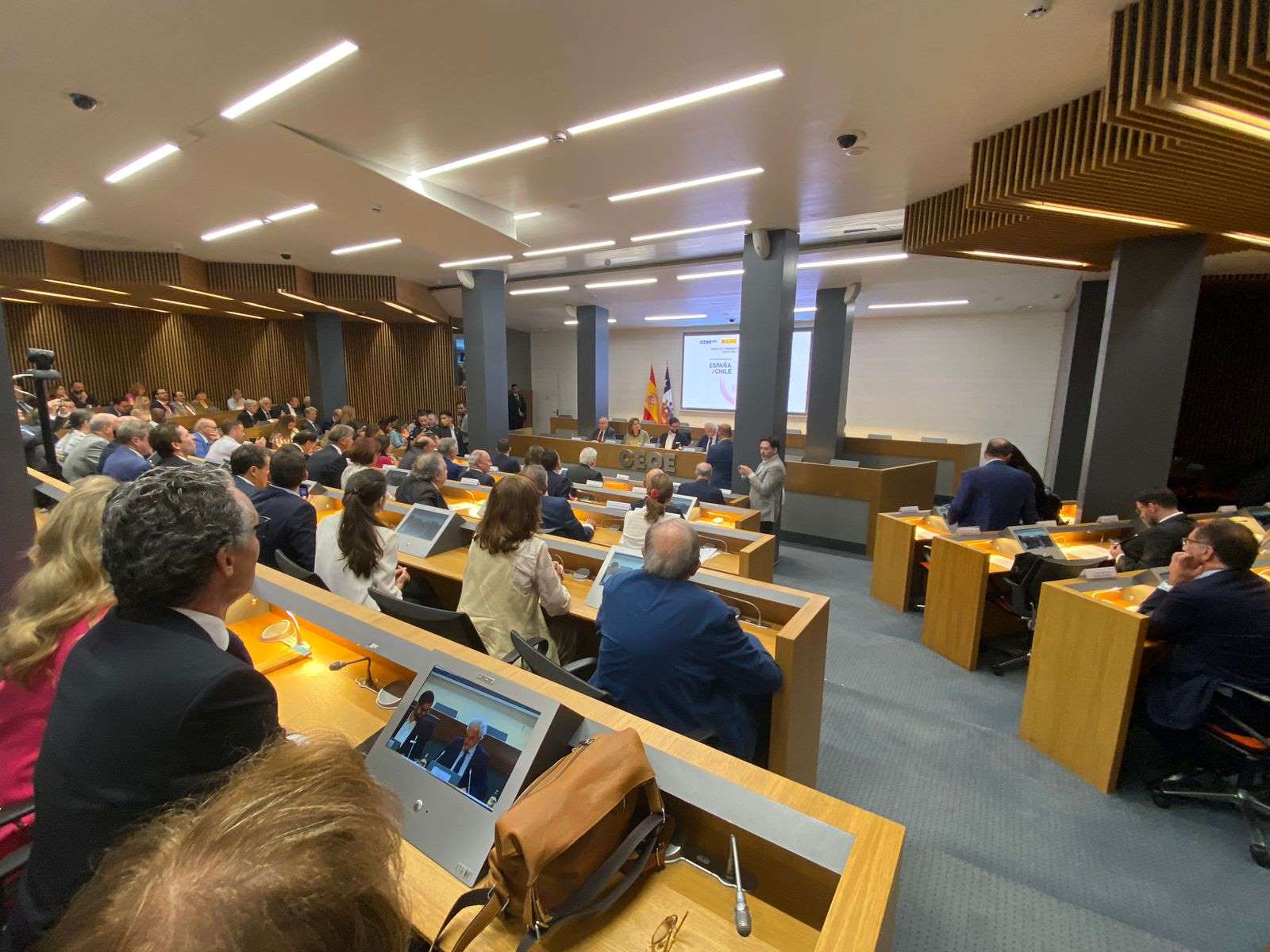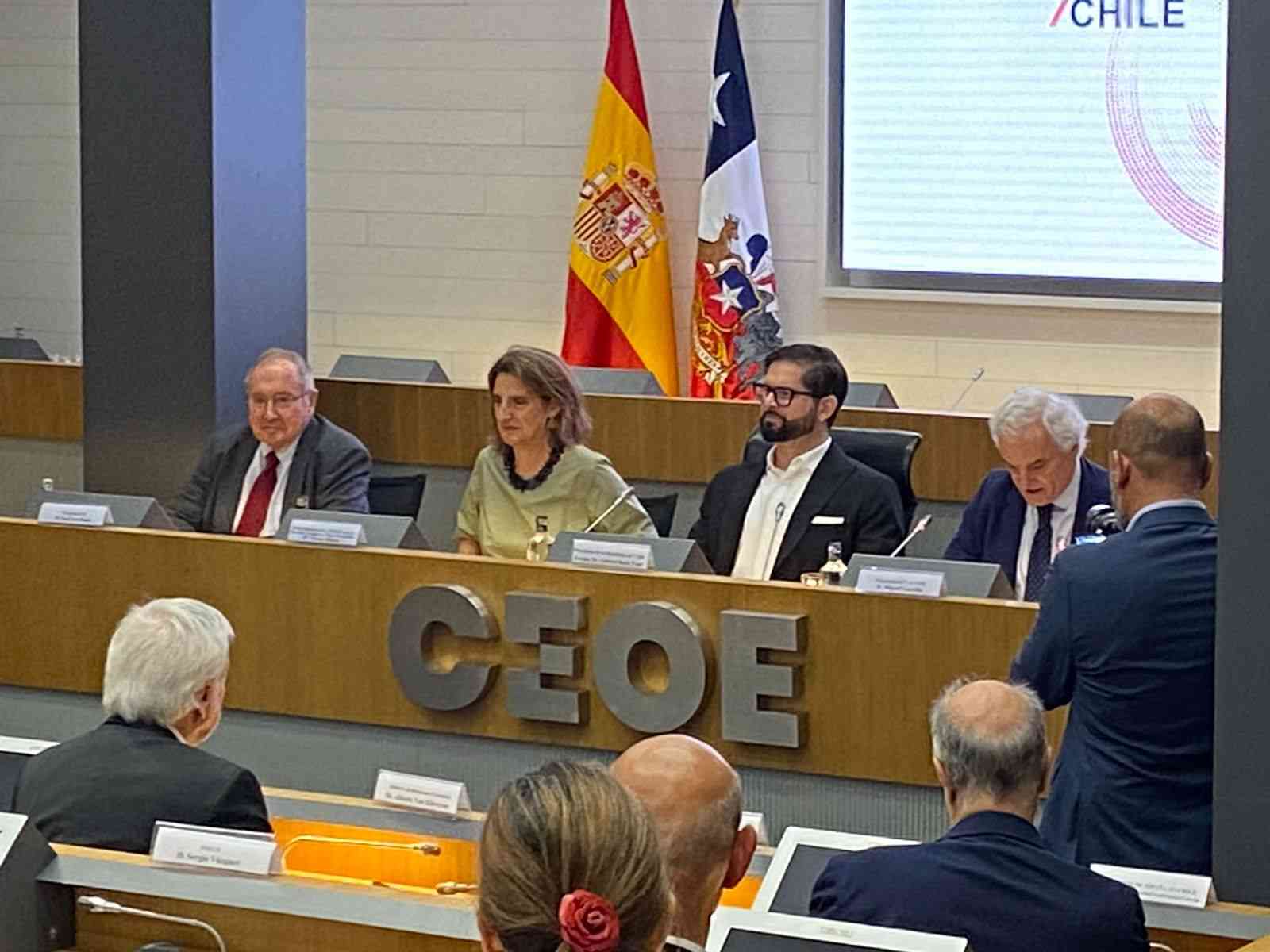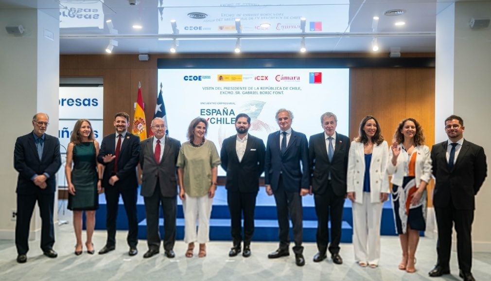 The President of the Republic, Gabriel Boric, participated this Friday in a well-attended meeting with Spanish businessmen and investors in Madrid, organized by the Confederación de Organizaciones Empresariales de España (Spanish Confederation of Business Organizations). The event was part of their official European tour, a visit which has been marked by a strong emphasis on foreign investment promotion. “Our country is a reliable partner and a safe investment destination,” assured the Chilean head of state on the occasion, who also invited companies to “deepen the ties” that bind both nations, and highlighted new sectors that present opportunities not only for conducting business, but also for leading the fight against climate change.
