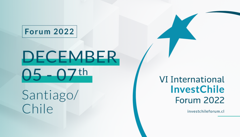 InvestChile is organizing its 6th International Investment Forum 2022, which will present emerging investment opportunities and Chile’s new economic strategies and FDI policies. The event will be held on December 5,6 and 7 and will offer a range of opportunities for gaining an overall view of the investment climate in Chile.