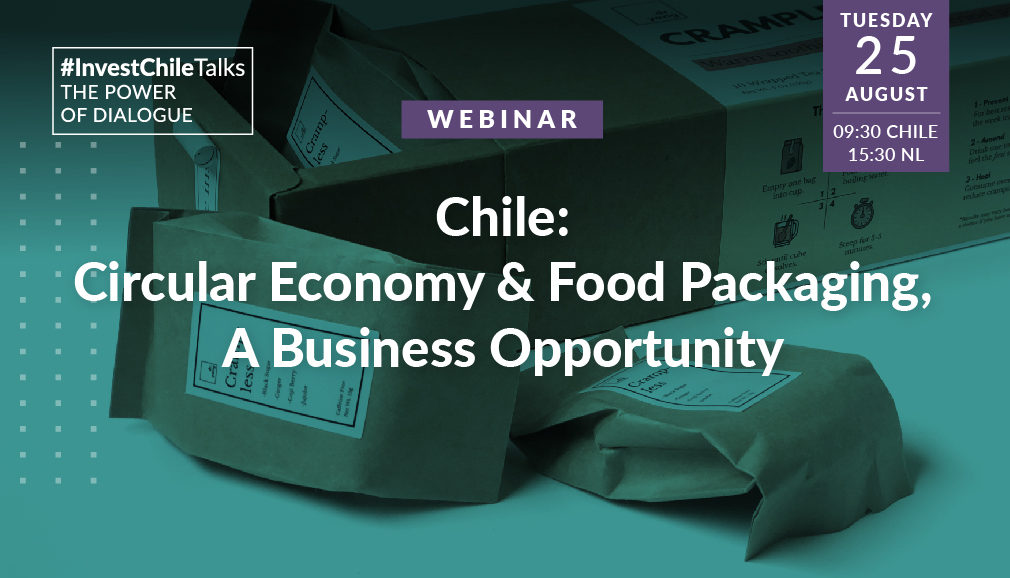 Sustainability in the economy is a crucial topic for today’s challenges regarding development. This webinar hosted by InvestChile- the Foreign Investment Promotion Agency – with The Netherlands Embassy in Chile, will address the advances of the Circular Economy Road Map. Also, how initiatives such as the Plastics Pact & the ‘REP’ Law, will bring a fruitful scenario for investment opportunities in the food packaging industry.
