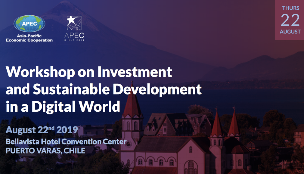 InvestChile, the Foreign Investment Promotion Agency of the Government of Chile, and The World Economic Forum, on behalf of APEC, invite you to attend to the event “Workshop on Investment and Sustainable Development in a Digital World”, to be held on August 22nd at the Bellavista Hotel Convention Center in Puerto Varas, Chile. We invite you to take part in a high-level conversation about the key investment and sustainable development global trends, in the context of the 4th Industrial Revolution.